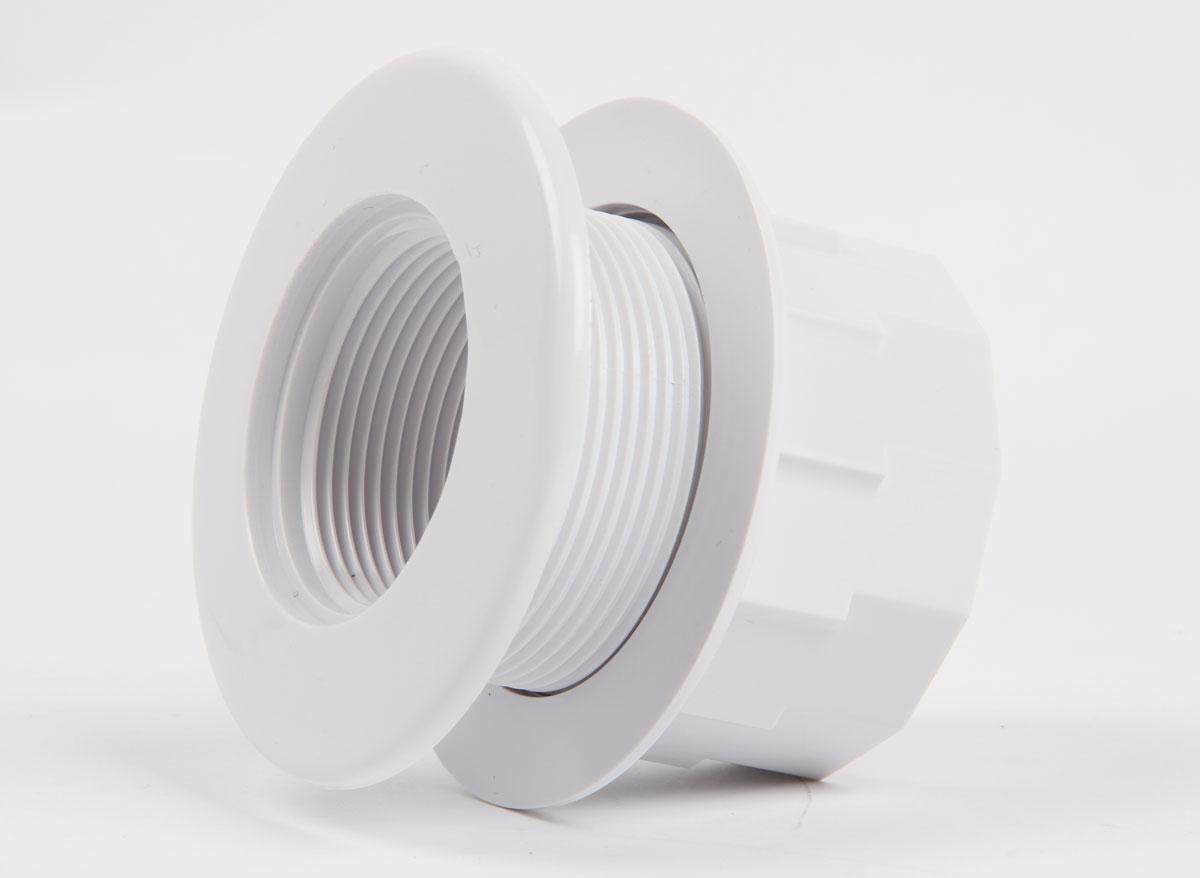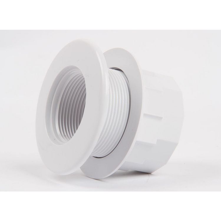 Prise balai + écrou arrière de la marque Hayward pour piscine à coque. Coloris : blanc. Matière : ABS.
