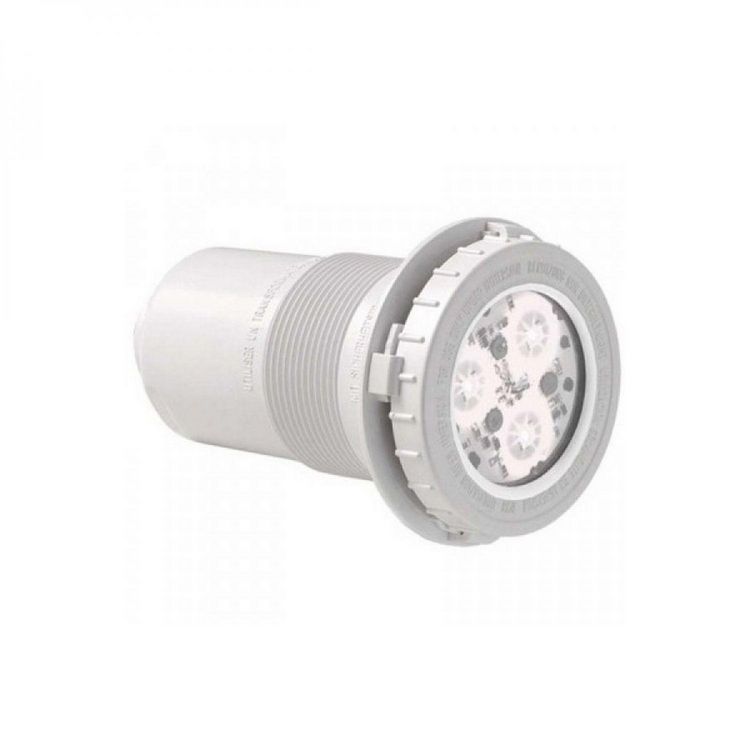 Projecteur LED 3424 d'Hayward pour piscine béton. Ce projecteur se fixe sur une traversé de paroi spécifique liner (Hayward 3352) très simplement. Le projecteur est composé de 3 leds de couleur blanche de haute intensité. La durée moyenne est d'environ 30 000 heures. Le projecteur est livré complet avec niche, optique et gaine de liaison. Caractéristiques : Alimentation électrique en très basse tension de sécurité (TBTS), Niche en matière plastique ultra résistant, 3 leds de haute intensité de couleur blanche de 18 W / 12 V, Câble d'alimentation immergeable 2 x 1,5 mm², Gaine de protection du câble avec 2 extrémités filetées, Enjoliveur en ABS blanc traité anti UV. Son coloris est blanc. Le modèle est le 3424.