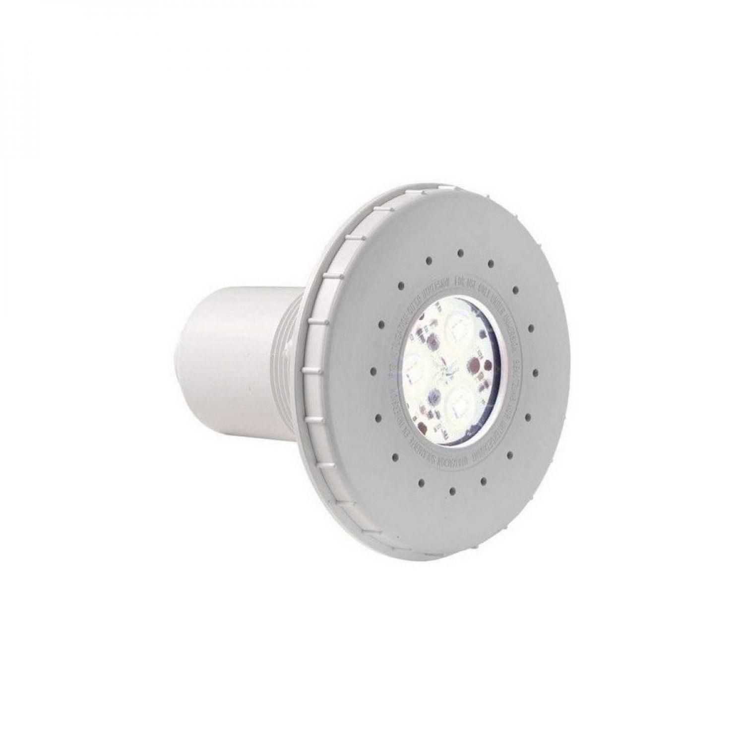 Projecteur à LED blanche 3429 cofies pour piscine liner. Ce projecteur se fixe sur une traversée de paroi type 3353. Le projecteur est composé de 3 leds de couleur blanche de haute intensité. La durée moyenne est d'environ 30 000 heures. Caractéristiques : Alimentation électrique en très basse tensi