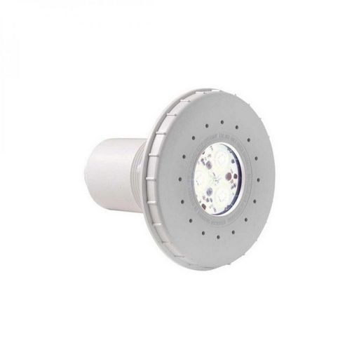 Projecteur à LED blanche 3429 cofies pour piscine liner. Ce projecteur se fixe sur une traversée de paroi type 3353. Le projecteur est composé de 3 leds de couleur blanche de haute intensité. La durée moyenne est d'environ 30 000 heures. Caractéristiques : Alimentation électrique en très basse tension de sécurité (TBTS), Niche en matière plastique de grande résistance : polypropylène + fibres de verre, Dimensions de la niche : profondeur 95 mm ø 110 mm, Bride et enjoliveur en ABS traité anti-UV, Joint en élastomère avec adhésif, 3 leds de haute intensité de couleur blanche de 18 W / 12 V, Câble alimentation immergeable 2 x 1,5 mm², Gaine de protection du câble avec 2 extrémités filetées Son coloris est blanc. Le modèle est le 3429.