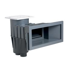 Connexion inférieure d'aspiration à visser mâle Ø 2 pour le raccordement à la filtration. Connexion supérieure du trop plein en Ø 32mm femelle à coller. Collerette carrée 232 mm x 232 mm ajustable sur 3 cm. Couvercle d'accès rond : Ø 230 mm. Panier de dégrillage. Volet flottant anti-retour avec amortisseur silencieux.