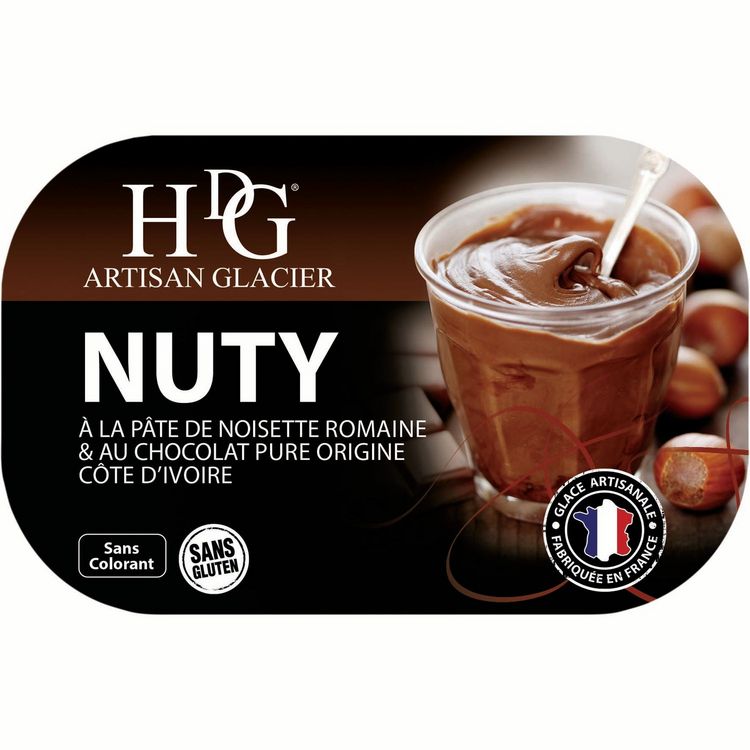 Glace nuty à la pâte de noisette romaine et au chocolat pure origine Côte d'Ivoire