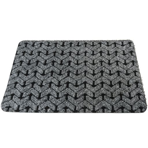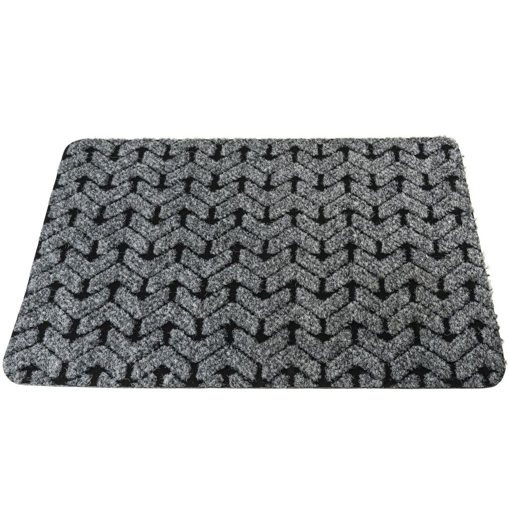 Description: - tapis de sol absorbeur - tapis aux motifs chevron - base du tapis en caoutchouc - base du tapis anti dérapante - base du tapis étanche - idéal pour l'intérieur comme pour l'extérieur - permet d'absorber la saleté et l'humidité des chaussures - couleur: noir et gris - dimens