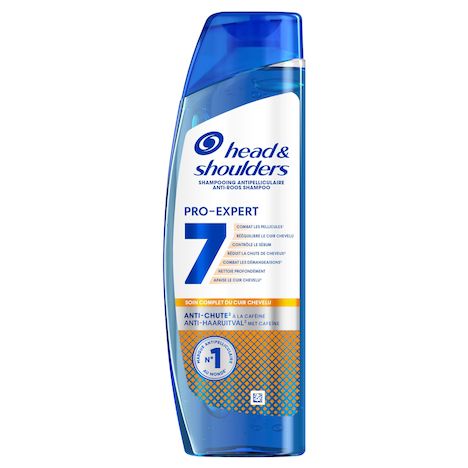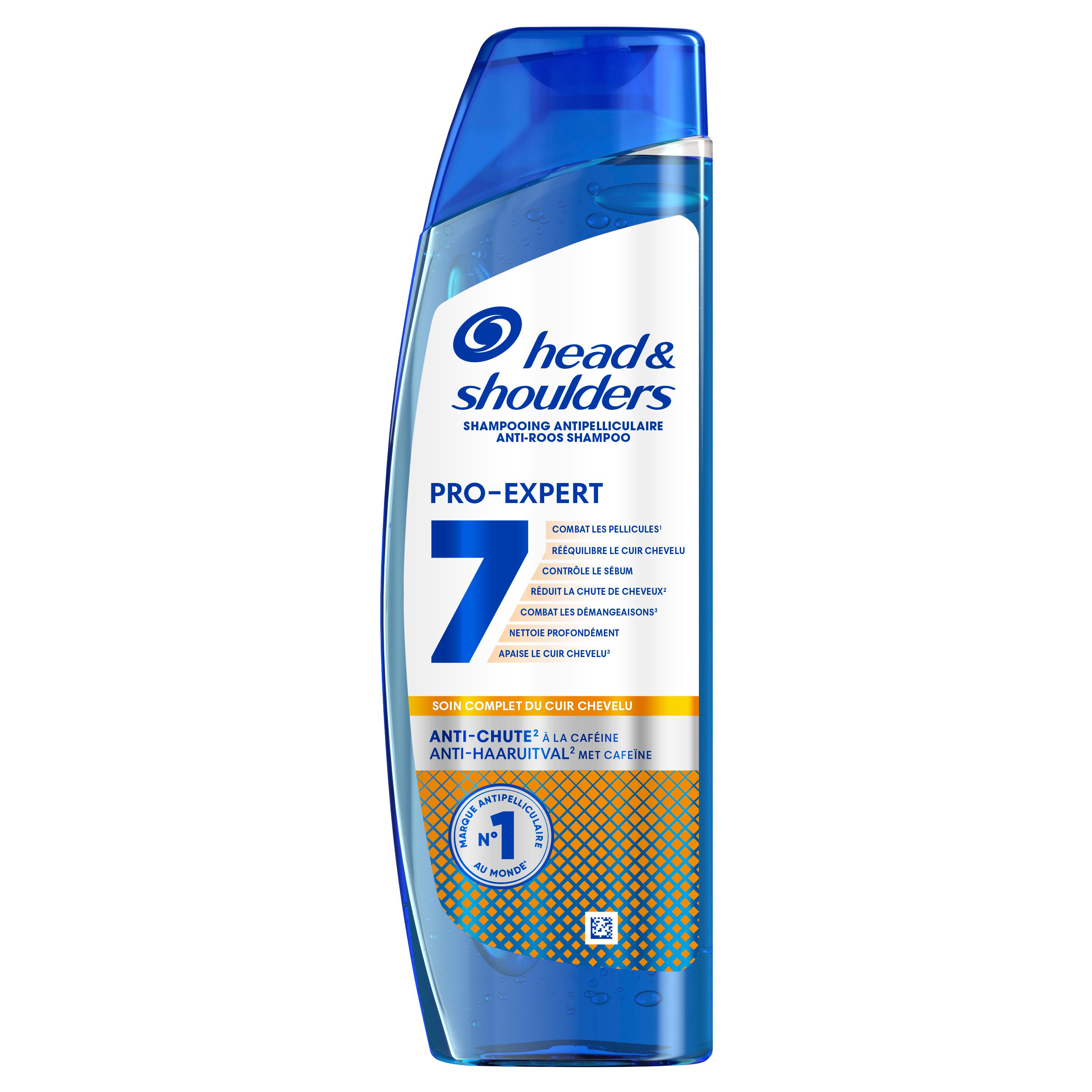 Le Shampoing Antipelliculaire Pro-Expert 7 Anti-Chute, infusé de caféine, contient le niveau le plus élevé de piroctone olamine jamais atteint par Head & Shoulders. Cette formule lutte contre 7 problèmes du cuir chevelu, vous offrant une protection complète et prouvée cliniquement pour augmenter la rétention des cheveux sur 8 semaines, tout en aidant à nettoyer et rééquilibrer le cuir chevelu. Utilisez-le à chaque lavage pour des résultats optimaux. PROTECTION COMPLÈTE DU CUIR CHEVELU EN 1 BOUTEILLE : 1. Combat les pellicules tenaces*, 2. Rééquilibre le cuir chevelu, 3. Contrôle l'excès de sébum, 4. Nettoie en profondeur les pores, 5. Combat les démangeaisons**, 6. Soulage le cuir chevelu, 7. Réduit la chute des cheveux*** *pellicules visibles, avec une utilisation régulière **démangeaisons liées aux pellicules, avec une utilisation régulière ***Rétention des cheveux due à une amélioration de l'état du cuir chevelu.