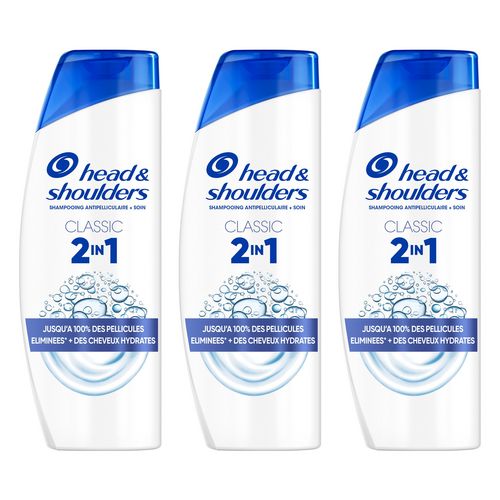 Le shampoing antipelliculaire Head & Shoulders Classic 2 en 1 pour tous types de cheveux et cuir chevelu agit même contre les pellicules tenaces. Ce shampoing à usage quotidien, conçu pour les hommes et les femmes, à partir de la formule Protectrice du Microbiome, qui cible la cause première de l'apparition de pellicules, aide à maintenir l'équilibre du microbiome du cuir chevelu. Il agit à la fois contre les pellicules visibles et invisibles, en libérant deux fois plus d'agents protecteurs, qui pénètrent dans les pores, afin d'empêcher le retour des pellicules tenaces. Cette formule de shampoing 2 en 1 contient 25% d'agents nourrissants supplémentaires par rapport au shampoing Head and Shoulders classique. Ce produit a été cliniquement prouvé, testé sous contrôle dermatologique et offre un pH équilibré.