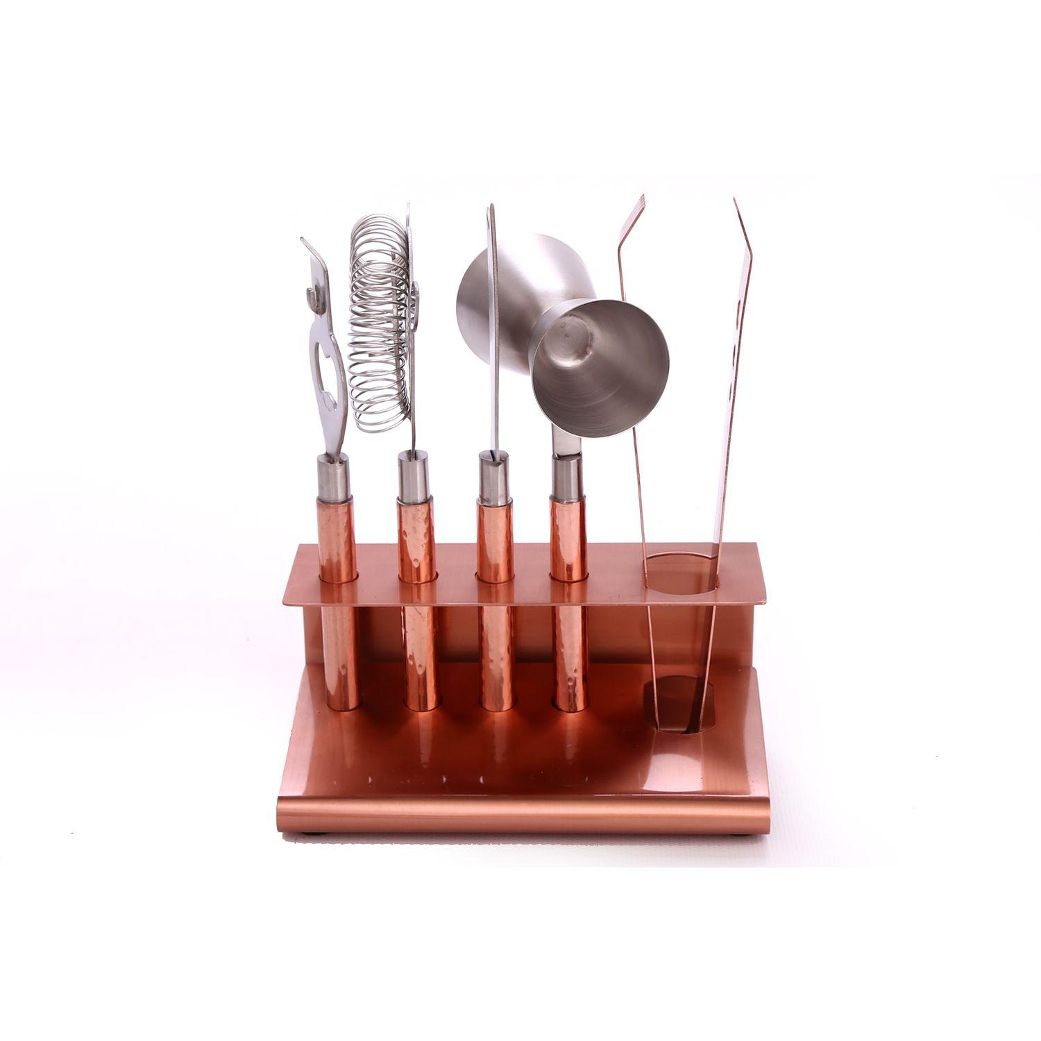 6 Ustensiles à cocktail en Inox martelé - Couleur cuivrée