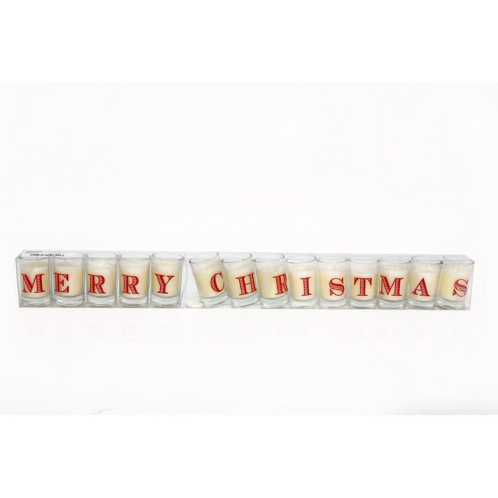 Affichez une décoration traditionnelle avec ces bougies à l'inscription Merry Christmas .