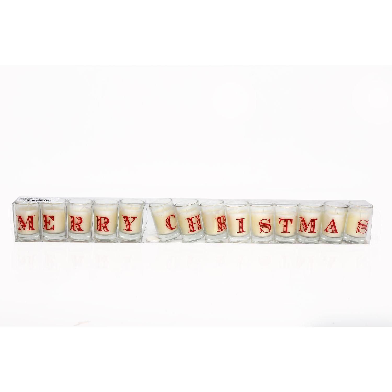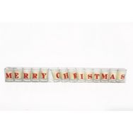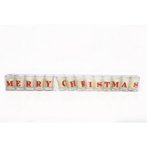Affichez une décoration traditionnelle avec ces bougies à l'inscription Merry Christmas .FICHE TECHNIQUE- Bougeoir en verre.CARACTERISTIQUES TECHNIQUES- Dimensions : L. 36 x l. 3 x H. 5 cm.- Poids : 0,75 kg.