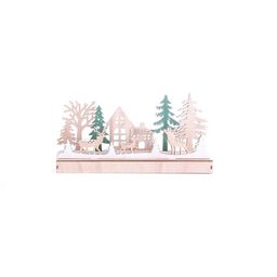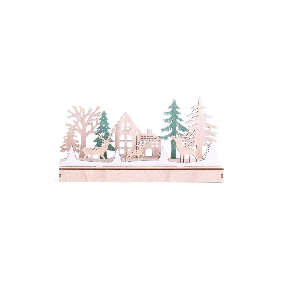 Décoration de Noël à poser en bois maison Forest Deco - Beige et vert
