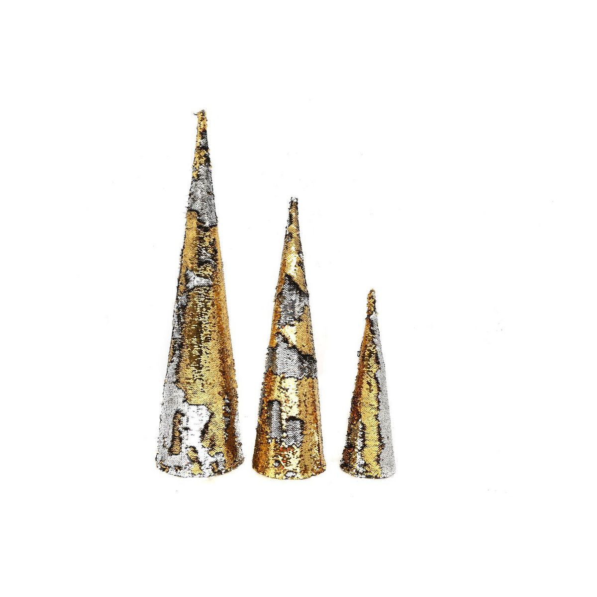 Resplendissant de mille feux, ces trois cônes en sequin vous feront vivre un Noël scintillant.FICHE TECHNIQUE- Cônes en plastique et paillettes.- Lot de 3 cônes.CARACTERISTIQUES TECHNIQUES- Dimensions du grand cône : Diam. 20 x H. 80 cm.- Dimensions du moyen cône : Diam. 16 x H. 60 cm.- Dimensions d