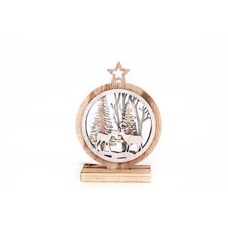 Créez une décoration intérieure de Noël naturelle avec cette déco. Grâce à son design effet bois, elle ajoutera à votre intérieur une touche rustique et vous fera vivre un Noël remplie de douceur.FICHE TECHNIQUE- Décoration de Noël à poser en contre-plaqué.CARACTERISTIQUES TECHNIQUES- Dimensions : L