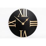 Minimaliste et épurée, cette horloge apportera une touche d'élégance à vos murs grâce à son fond noir et ses chiffres romains dorés.FICHE TECHNIQUE- Horloge murale en ABS.- Inscription en aluminium.- Fonctionne avec une pile AA non incluse.CARACTERISTIQUES TECHNIQUES- Dimensions : Diam. 30,5 cm.- Po