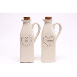 De style campagne avec son bouchon en liège et son motif, ces deux bouteilles seront idéales pour conserver votre huile et votre vinaigre.FICHE TECHNIQUE- Huilier et vinaigrier en céramique.CARACTERISTIQUES TECHNIQUES- Dimensions : L. 9,5 x l. 6,5 x H. 20,5 cm.- Poids : 0,7 kg.