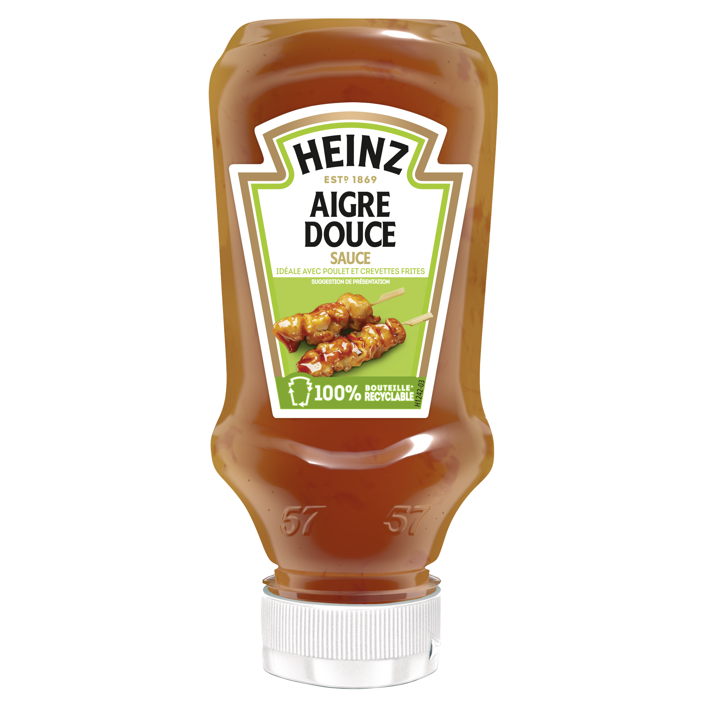 Découvrez la sauce Aigre Douce Heinz. Une sauce variété exotique à base de tomate et ananas, curry et mangue crée pour vous faire voyager. Cette recette originale sucrée salée venue d'Asie est idéale pour accompagner du poulet et crevettes frites et donner une touche asiatique à tous vos plats. Pour un maximum de praticité, découvrez cette bouteille souple "tête en bas" équipée d'un bouchon à valve en silicone. Pour une sauce toujours prête à être dégustée, un dosage facile et un bouchon toujours propre après usage. Cette sauce est disponible en flacon souple au format 230g.