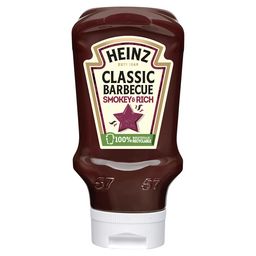 Découvrez la sauce Heinz Barbecue Classique. Une sauce au goût unique de tomates et d'épices, relevé d'une subtile note fumée caramélisée, évocatrice des goûts du Far West et parfaite pour toute la famille. Filets de porc, ailes de poulet marinées, magret de canard ou encore crevettes et gambas, vous aurez l'embarras du choix ! Pour un maximum de praticité, découvrez cette bouteille souple "tête en bas" équipée d'un bouchon à valve en silicone. Pour une sauce toujours prête à être dégustée, un dosage facile et un bouchon toujours propre après usage. Cette sauce est disponible en flacon souple au format 480g et 260g.