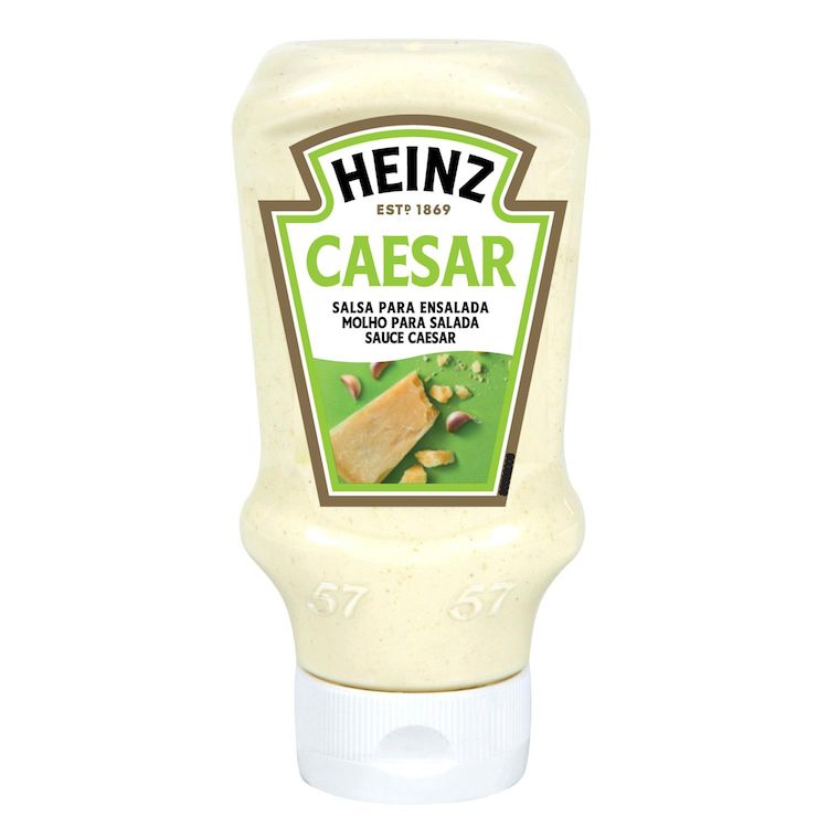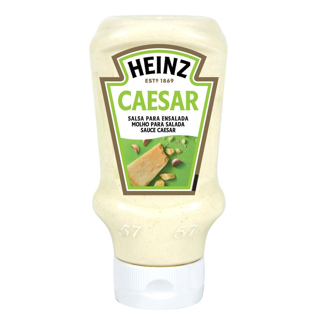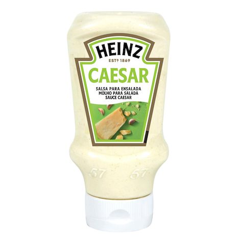 Découvrez la sauce Caesar Heinz. Une sauce salade avec du parmesan, des graines de moutarde et de l'ail qui donnent à notre recette ce goût si unique. La sauce Caesar Heinz est la sauce parfaite pour accompagner vos salades en été comme en hiver, leur apporter la gourmandise et la touche supplémentaires unique des sauces Heinz. Pour un maximum de praticité, découvrez cette bouteille souple ""tête en bas"" équipée d'un bouchon à valve en silicone. Pour une sauce toujours prête à être dégustée, un dosage facile et un bouchon toujours propre après usage. Cette sauce est disponible en flacon souple au format 225g et 405g.