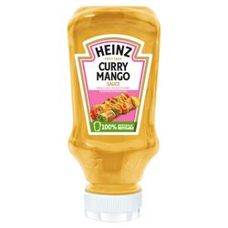 Ingrédients: Huile de tournesol 27%, eau, vinaigre, sucre, jus de mangue 4%, lactosérum en poudre (lait), curry, amidon modifié, sel, épices (contiennent moutarde, céleri), colorant (bêta-carotène), acidifiant (acide citrique), épaississants (gomme xanthane, gomme de guar), herbes, extrait de paprika.