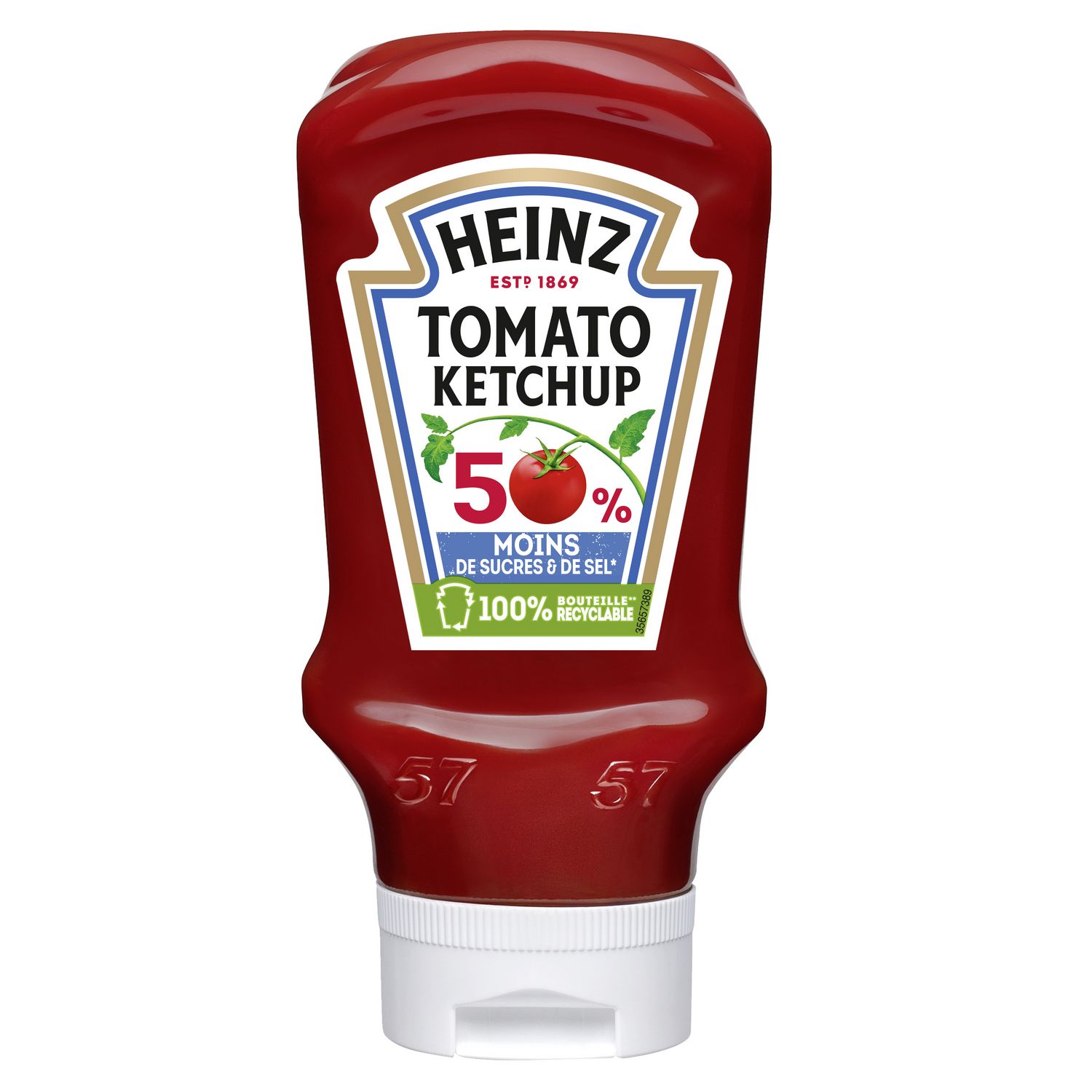 "Découvrez le Tomato Ketchup Heinz 50% de sucre et sel en moins. Ce Ketchup est une alternative plus saine pour ceux qui cherchent un produit avec moins de sucre et sel tout en gardant le goût irrésistible du Tomato Ketchup Heinz. Nos tomates gorgées de soleil, alliées à notre passion & savoir-faire, donnent à notre recette ce goût si unique. Sans colorants, arômes ou conservateurs artificiels, aucun autre tomato ketchup n'a le même goût que le nôtre. Une sauce parfaite pour les grillades entre amis, pour les plats de viande en famille, mais aussi pour les légumes ou tout simplement les hamburgers et les frites classiques. Pour un maximum de praticité, découvrez cette bouteille souple ""tête en bas"" équipée d'un bouchon à valve en silicone. Pour une sauce toujours prête à être dégustée, un dosage facile et un bouchon toujours propre après usage. N'hésitez pas à découvrir également nos différentes variétés de Tomato Ketchup, comme la version Bio, la version zéro, la version épicée, et la version aromatisée au cornichon. Notre Ketchup 50% de sucre et sel en moins est disponible en flacon souple au format 435g."