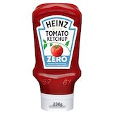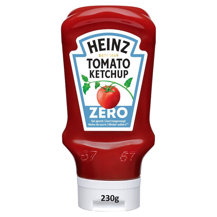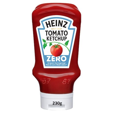Découvrez le Tomato Ketchup Zéro Heinz. Savourez maintenant le goût irrésistible du Ketchup Zéro Heinz, un ketchup sans sucre ni sel ajouté pour une alternative plus saine pour ceux qui cherchent à supprimer complètement le sucre et le sel ajoutés dans leur alimentation. Sans colorants, arômes ou conservateurs artificiels, aucun autre tomato ketchup n'a le même goût que le nôtre. Le Tomato Ketchup Zéro Heinz est la sauce parfaite pour les grillades entre amis, pour les plats de viande en famille, mais aussi pour les légumes ou tout simplement les hamburgers et les frites classiques. Nos tomates gorgées de soleil, alliées à notre passion & savoir-faire, donnent à notre recette ce goût si unique. Pour un maximum de praticité, découvrez cette bouteille souple "tête en bas" équipée d'un bouchon à valve en silicone. Pour une sauce toujours prête à être dégustée, un dosage facile et un bouchon toujours propre après usage. N'hésitez pas à découvrir également nos différentes variétés de Tomato Ketchup, comme la version Bio, la version épicée, et la version aromatisée au cornichon Notre Ketchup Zéro est disponible en flacon souple au format 230g et 610g.
