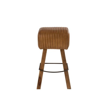 Tabouret de bar saut de cheval en bois et cuir - SAMIR