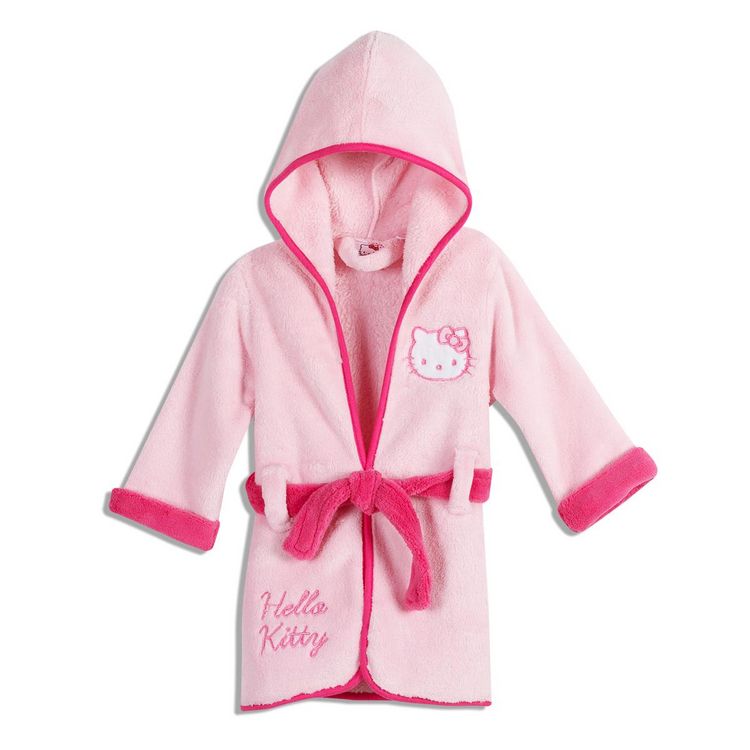 Enveloppez bébé de douceur avec cet adorable peignoir Hello Kitty ! Matière douce comme une peluche. Capuche. Motifs brodés. Ceinture cousue au dos. Ce peignoir bébé Hello Kitty est lavable en machine à 40°.