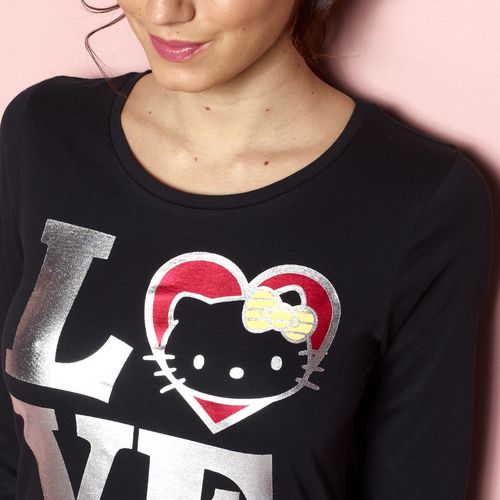 En savoir +Avec son imprimé Hello Kitty argenté, c'est certain, ce pyjama femme va rencontrer un franc succès ! Maille 100% coton pour un confort de chaque instant et un toucher doux. Tee-shirt col rond, manches longues. Bande de col intérieure contrastante. Pantalon à la taille élastiquée assurant un bon maintien. Motif Hello Kitty brillant sur le devant du haut et en bas du pantalon. Ce pyjama Hello Kitty femme est lavable en machine à 30°.