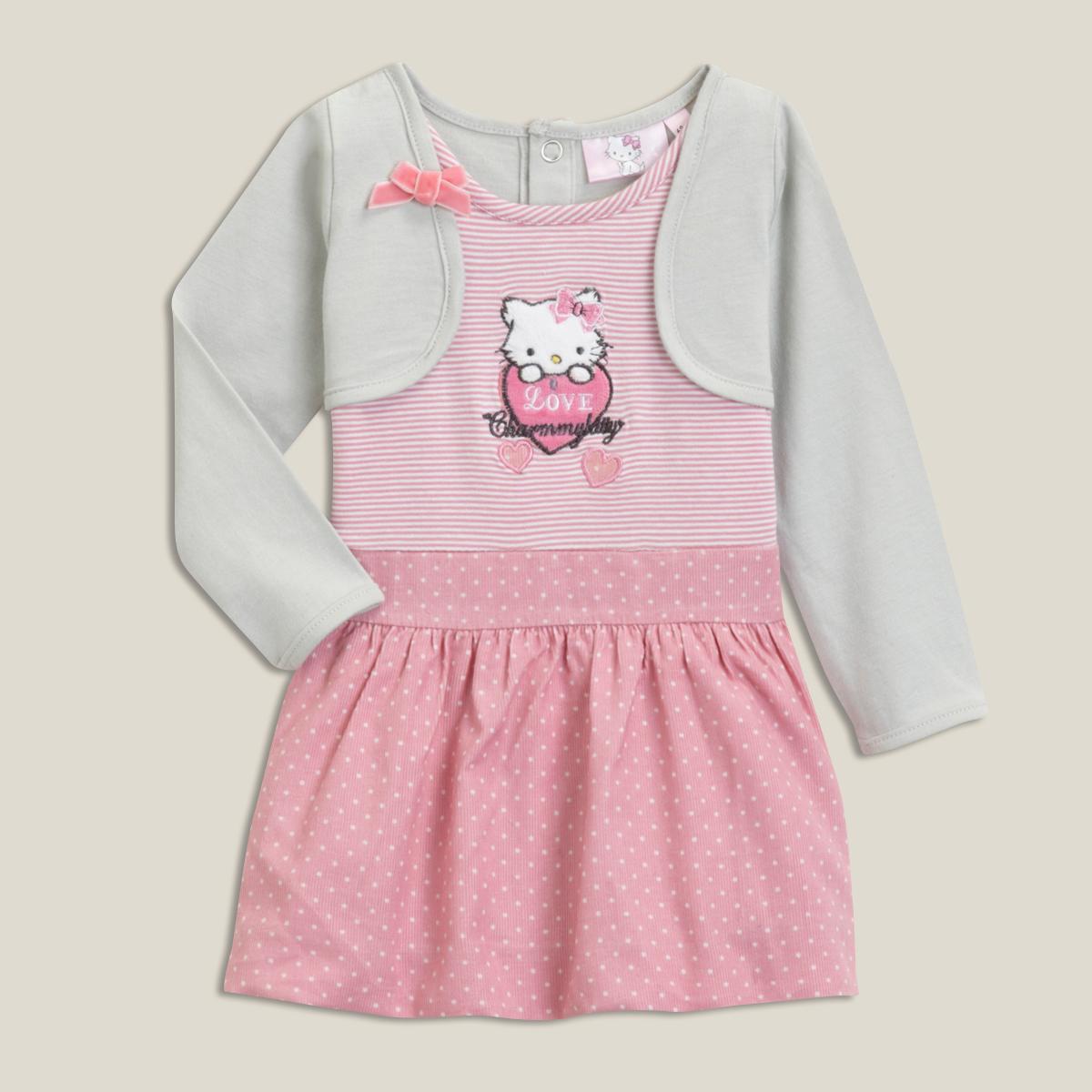 En savoir +Très charmante cette robe bébé Hello Kitty ! Robe bi-matière : haut en jersey et base en velours. Effet de 2 en 1 boléro sur tee-shirt. Col rond. Manches longues. Ouverture pressionnée en haut du dos. Nœud en ruban velours. Base forme boule. Cette robe Hello Kitty pour bébé est lavable en machine à 30°.