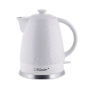 Cette bouilloire électrique en céramique blanche de la marque Maestro, modèle 1.5L 1500W, offre une capacité de 1,5 litre et une puissance de 1500 watts, parfaite pour préparer rapidement vos boissons chaudes. Son design épuré et moderne s'intègre facilement dans toutes les cuisines. Elle mesure 210