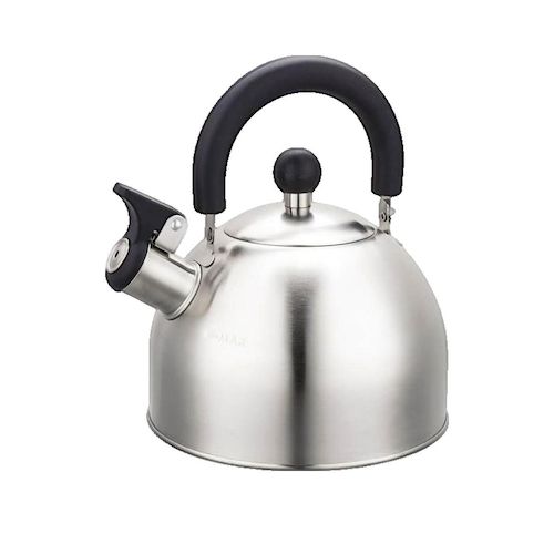 Découvrez la Bouilloire Maestro Moderne, élégante et fonctionnelle, conçue en acier inoxydable. Elle possède une capacité de 2 litres, idéale pour une utilisation quotidienne. Son fini argenté moderne est agrémenté d'accents noirs sur la poignée. Ce modèle est équipé d'un système d'enclenchement et d'un sifflet qui avertit lorsque l'eau arrive à ébullition. Compatible avec les plaques à induction, à gaz et vitrocéramiques, cette bouilloire allie robustesse et praticité pour améliorer vos préparations culinaires.