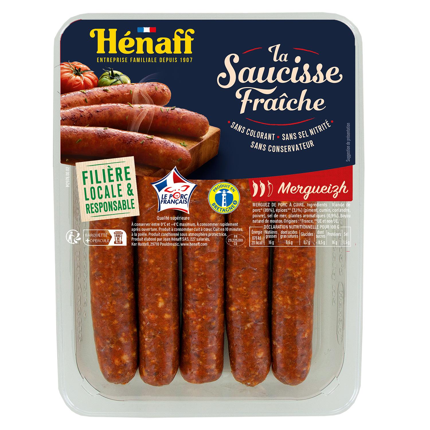 Origine du produit fini «LA MERGUEIZH PUR PORC HENAFF X5 VPF» : FRANCE. Porc : Né, élevé, abattu en France