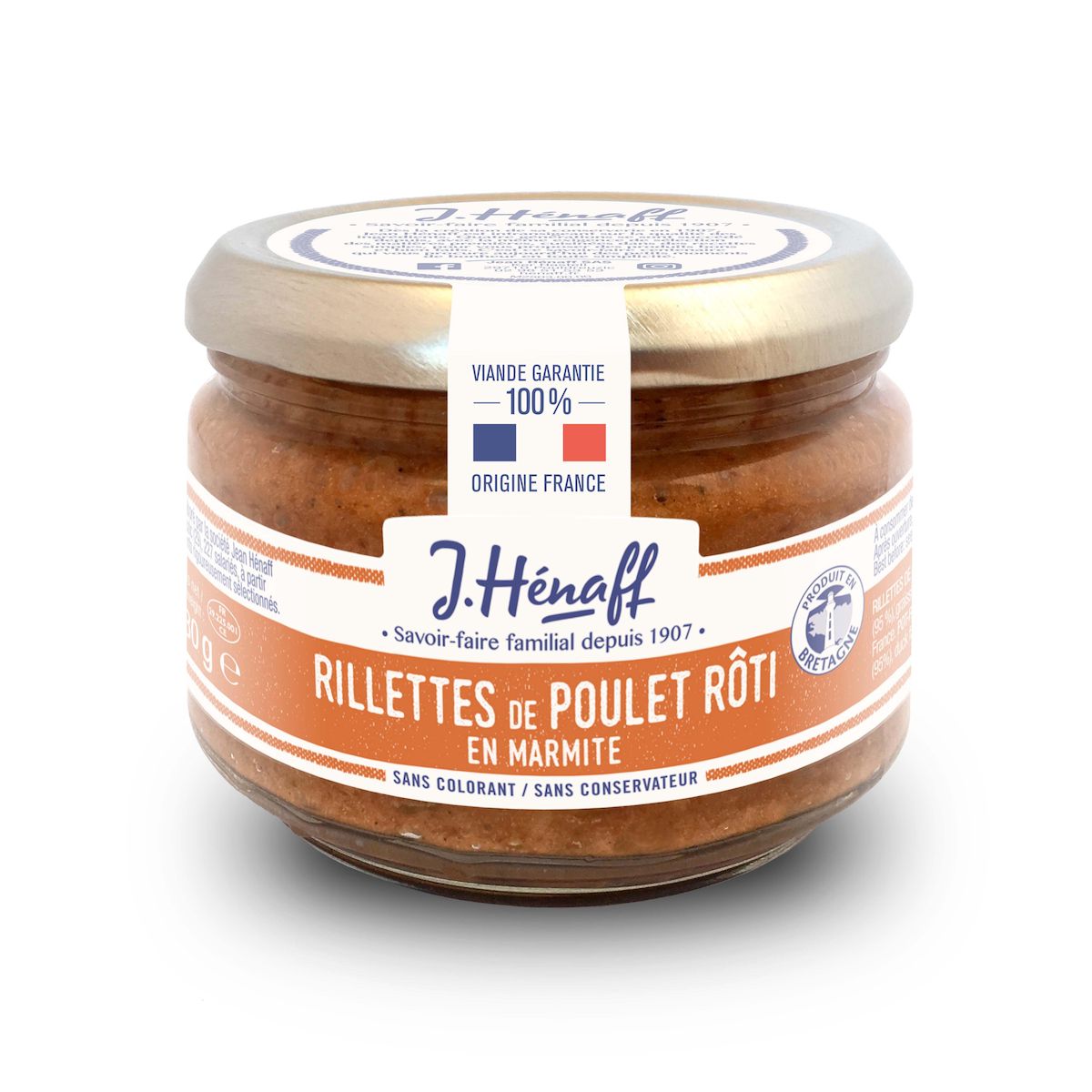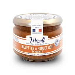 Origine du produit fini «RILLETTE POULET ROTI HENAFF 180G» : FRANCE. Volaille : Né, élevé, abattu en France