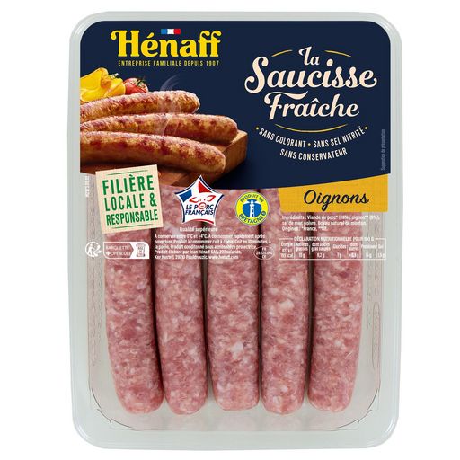 Saucisse fraîche de porc aux oignons, à cuire qualité supérieure
