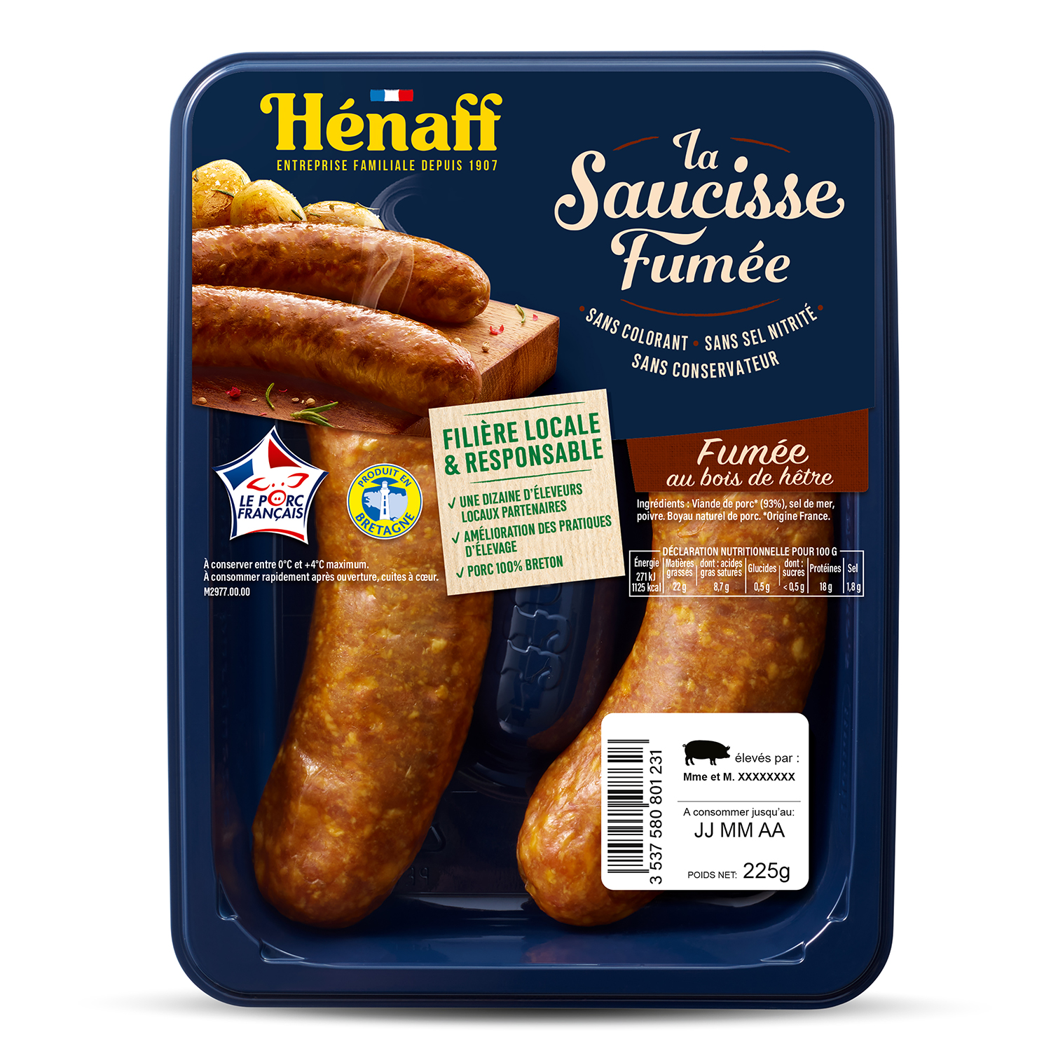 Origine du produit fini «SAUCISSE FUMEE 2 GROSSES HENAFF 225 GRAMMES VPF» : FRANCE.