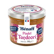 Origine du produit fini «TARTINADE POULET TANDOORI 90G HENAFF» : FRANCE. Volaille : Né, élevé, abattu en France