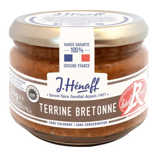 Origine du produit fini «TERRINE BRETONNE LABEL ROUGE HENAFF 180 GRAMMES» : FRANCE. Porc : Né, élevé, abattu en France