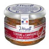 Origine du produit fini «TERRINE DE CAMPAGNE AU PIMENT D'ESPELETTE J.HENAFF 180 GRAMMES» : FRANCE. Porc : Né, élevé, abattu en Franc