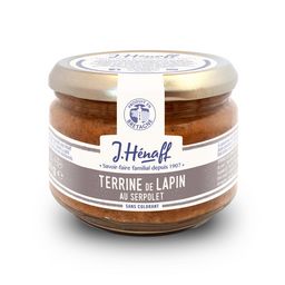 Ingrédients : (FR): Viande de porc*, viande de lapin** (20%), foie de poulet*, gras de porc*, foie de porc*, OEUF entier, couenne*, vin blanc, Armagnac, sel de mer, plantes aromatiques, épices, serpolet, ail. Origines : *France, **UE