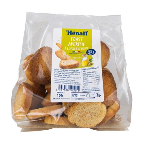 Origine du produit fini « TOAST HUILE OLIVE HENAFF 100G » : France # Origine de l’ingrédient primaire « Farine de froment » : UE # Origine de l’ingrédient primaire « Huile d’olive» : U.E / non U.E