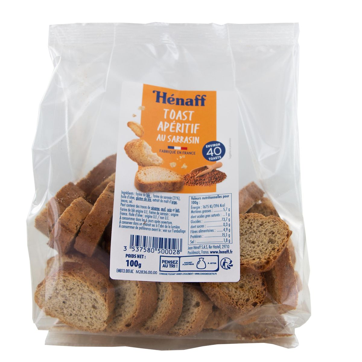 Origine du produit fini « TOAST SARRASIN HENAFF 100G » : France # Origine de l’ingrédient primaire « Farine de blé » : UE # Origine de l’ingrédient primaire « Farine de sarrasin » : France # Origine de l’ingrédient primaire « Huile d’olive» : U.E / non U.E