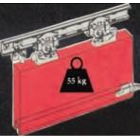 Ferrures pour portes coulissantes séparatives lourdes.- Glissière à billes en acier.- Pour portes en bois à usage intensif.- Réglable.- Fixation en applique.- Possibilité de mettre une deuxième porte.