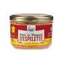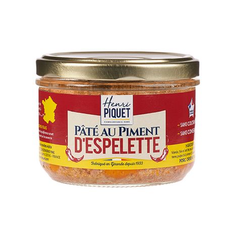 Pâté onctueux à la saveur épicée résultant du piment, de couleur beige rosé, à hachage assez fin enrobé d’une couronne de graisse orangée due au piment et d’une pellicule de gelée sur le fond.
