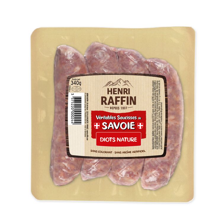 HENRI RAFFIN Diots de Savoie saucisses nature 4 pièces 340g