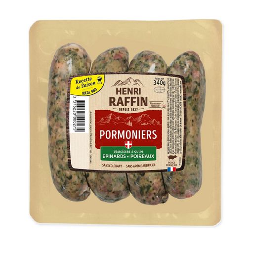 Ingrédients : Viande de porc (75%), épinard (9%), poireaux (9%), sel, LACTOSE, épices, dextrose, antioxydant : E300 - E301, conservateur : nitrite de sodium. Boyau naturel de porc.