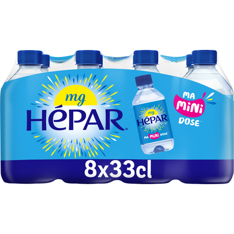 Une eau minérale naturelle unique : HEPAR facilite le transit intestinal*. De plus, la consommation d'1 litre d'HEPAR permet de couvrir 31% des apports recommandés en magnésium. * HEPAR peut être laxative, boire 1L d'HEPAR par jour dans le cadre d'une alimentation variée et équilibrée et d'un mode de vie sain.