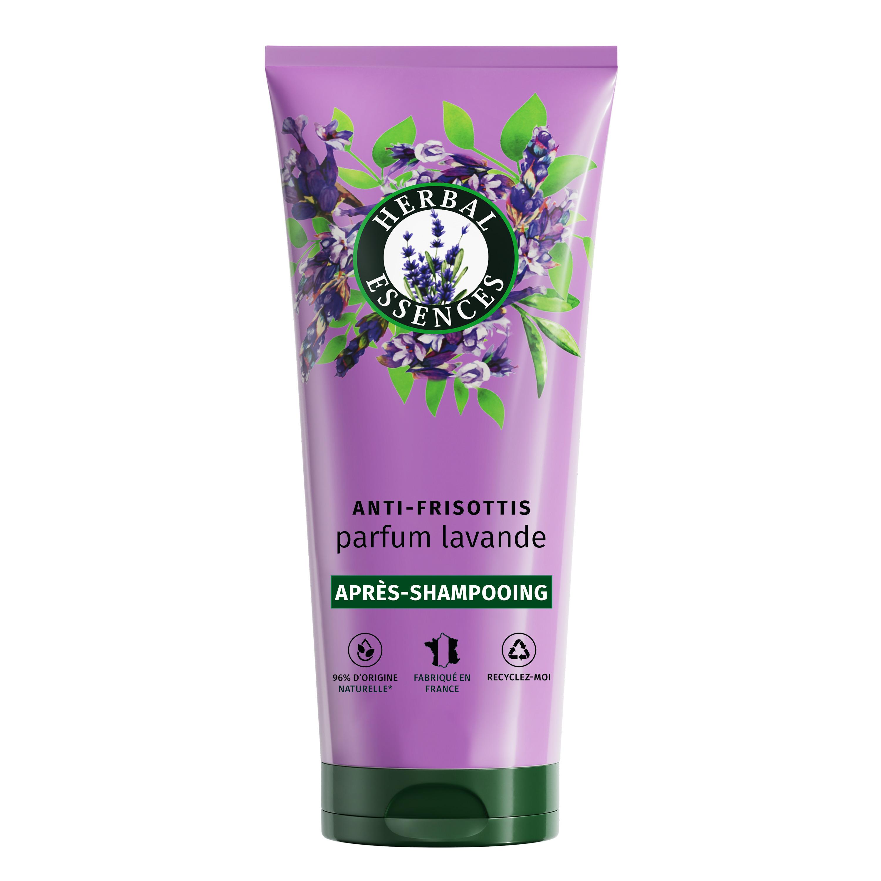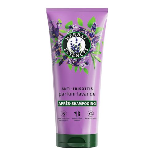 herbal essences, bien-être, vegetal, nature, non testé sur les animaux, shampoing naturel, emballage recyclable, herbal essences après shampoing, après shampoing naturel, lavande, eau purifiée, végane, anti-frisottis cheveux, sans silicone, origine naturelle