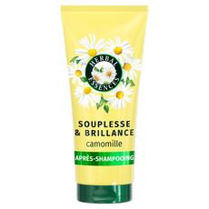 La nature et ses secrets vous offrent une chevelure éclatante grâce à l'Après-shampoing Herbal Essences Souplesse & Brillance Camomille. Infusé d'extrait de camomille, cet après-shampoing vegan accroît la brillance et la souplesse naturelles de vos cheveux. Appréciez le parfum d'une prairie d'été et profitez d'un moment revigorant grâce au parfum floral enivrant. Notre après-shampoing crémeux contient un mélange de nutriments d'origine végétale, laissant vos cheveux irrésistiblement souples et brillants. Étant à la fois un après-shampoing à rincer et sans rinçage, notre formule offre une double utilisation. Vous pouvez ainsi davantage profiter du délicat parfum estival tout en réduisant la consommation d'eau. Grâce à cette sélection d'ingrédients d'origine naturelle, profitez des vertus botaniques dans votre salle de bain. Redonnez à vos cheveux leur beauté naturelle et éveillez vos sens par le biais d'une routine complète, via l'utilisation des produits de notre gamme Souplesse & Brillance Camomille.