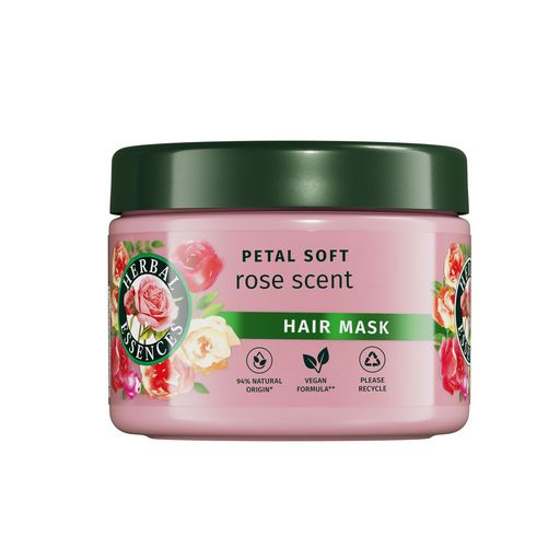 herbal essences, bien-être, vegetal, nature, non testé sur les animaux, shampoing naturel, emballage recyclable, herbal essences masque, masque herbal essences, masque cheveux naturel, eau purifiée, végane, huile de rose, pétale de rose, sans silicone, plastique recyclé