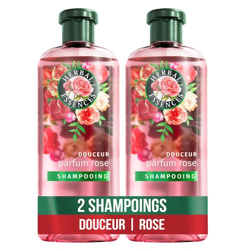 herbal essences, bien-être, vegetal, nature, non testé sur les animaux, shampoing naturel, emballage recyclable, herbal essences shampoing, shampoing naturel, shampoing végane, eau purifiée, végane, huile de rose, pétale de rose, sans silicone, plastique recyclé