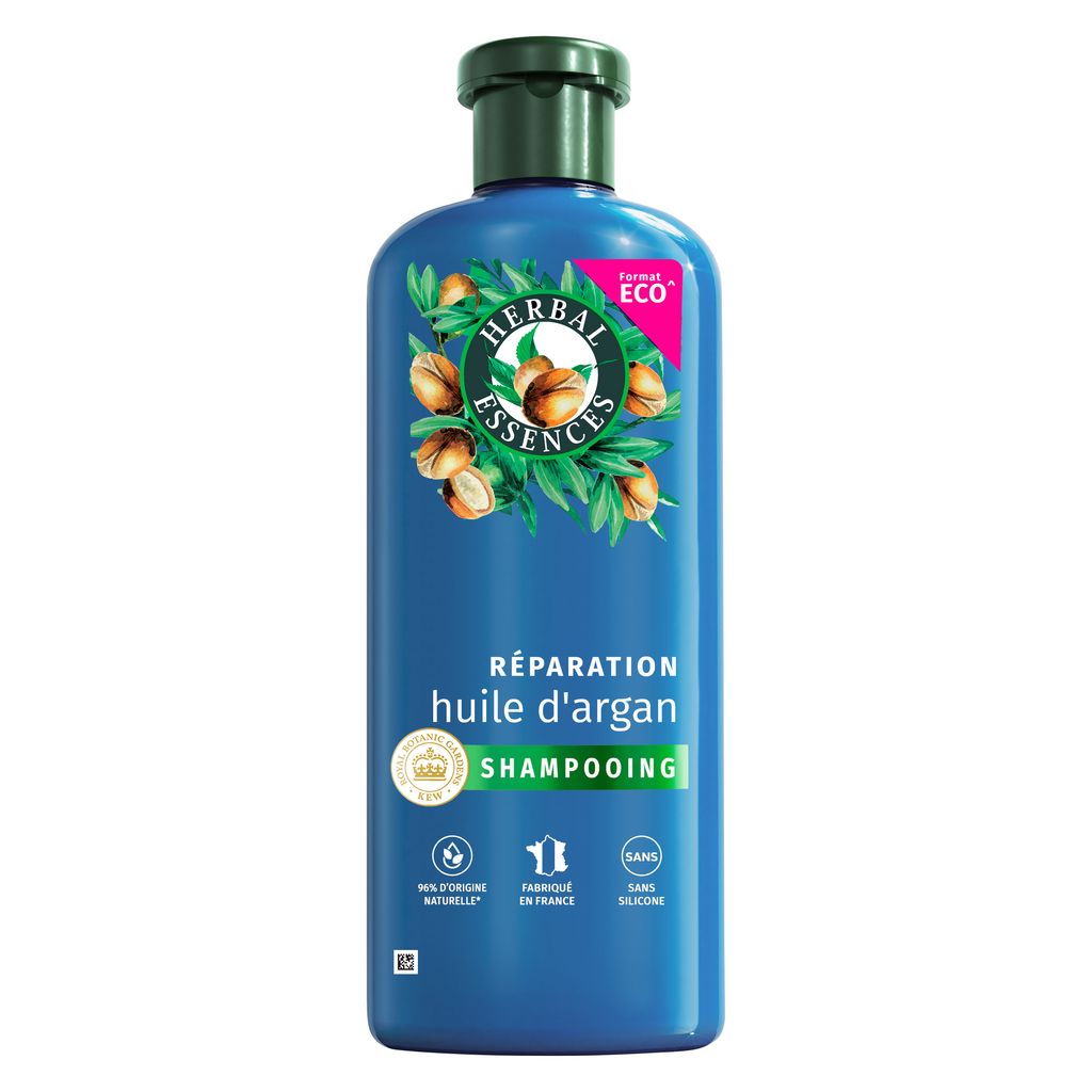 herbal essences, bien-être, vegetal, nature, non testé sur les animaux, shampoing naturel, emballage recyclable, herbal essences shampoing, shampoing naturel, shampoing végane, huile d'argan, eau purifiée, végane, nutrition intense, hydratation intense, cheveux brillants, réparation, plastique recyclé, sans silicone