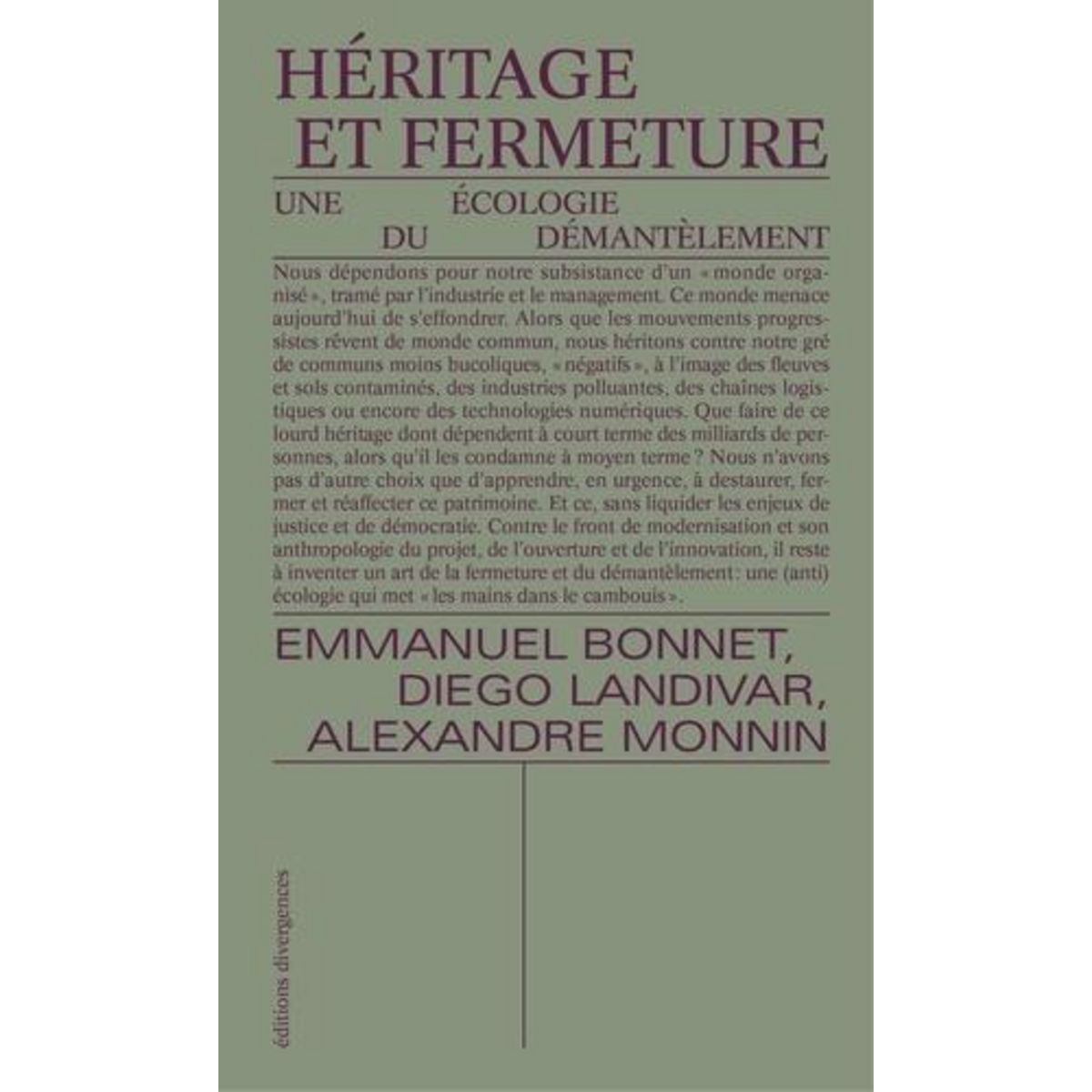 Nous dépendons pour notre subsistance d'un monde organisé, tramé par l'industrie et le management. Ce monde menace aujourd'hui de s'effondrer. Alors que les mouvements progressistes rêvent de monde commun, nous héritons contre notre gré de communs moins bucoliques, négatifs, à l'image des fleuves et sols contaminés, des industries polluantes, des chaînes logistiques ou encore des technologies numériques. Que faire de ce lourd héritage dont dépendent à court terme des milliards de personnes, alors qu'il les condamne à moyen terme ? Nous n'avons pas d'autre choix que d'apprendre, en urgence, à destaurer, fermer et réaffecter ce patrimoine. Et ce, sans liquider les enjeux de justice et de démocratie. Contre le front de modernisation et son anthropologie du projet, de l'ouverture et de l'innovation, il reste à inventer un art de la fermeture et du démantèlement : une (anti)écologie qui met les mains dans le cambouis .